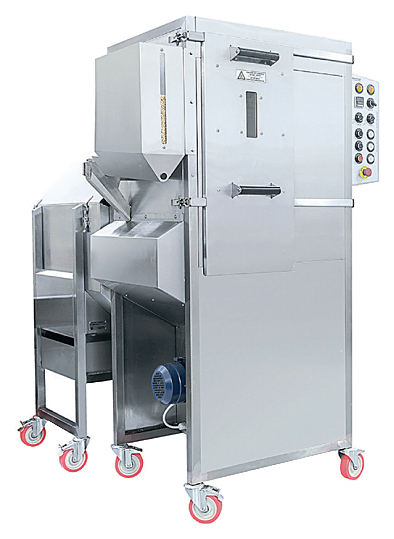 Аппарат для попкорна ТТМ Grand Robopop 220 предназначен для раскрытия кукурузного зерна при помощи горячего воздуха на предприятиях пищевой промышленности. Распределение зерна по параболическому дну чаши рабочей камеры происходит равномерным слоем. Зерно постоянно находится в движении вокруг оси чаши, перемешивается и равномерно прогревается. Благодаря вихревому воздушному потоку внутри камеры, раскрывшиеся зерна немедленно удаляются из горячей зоны, что благотворно сказывается на качестве и вкусе попкорна.
