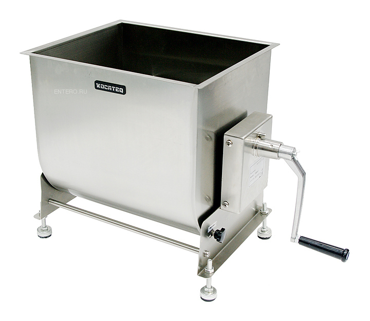 Фаршемешалка Kocateq FME30T используется на предприятиях общественного питания и торговли для перемешивания измельченного мяса или рыбы в однородную смесь. Модель оснащена ручным приводом, хабом для подключения электрического привода и откидным бункером. Корпус выполнен из нержавеющей стали, съемная ось с лопастями - из нержавеющей стали толщиной 3 мм, емкость для смешивания - из нержавеющей стали толщиной 2 мм.