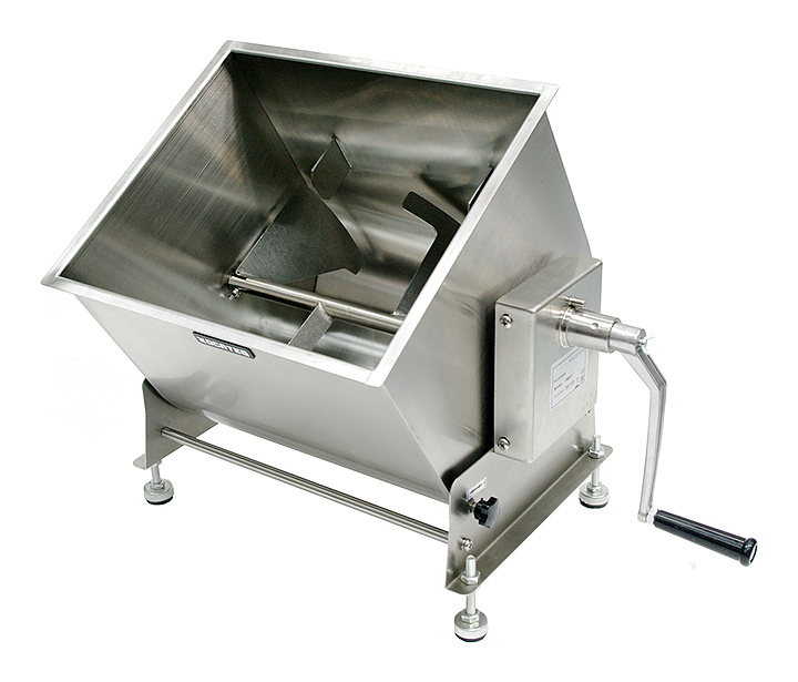 Фаршемешалка (миксер пищевых смесей) одноосная, с опрокидываемой емкостью объемом 50 л , с ручным приводом и с хабом для подключения электрического привода.