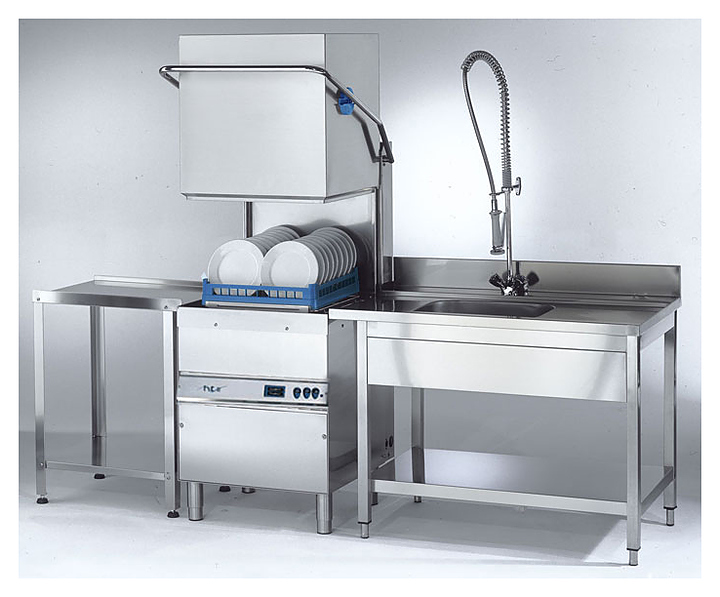 Купольная посудомоечная машина Dihr HT 11 используется на средних и крупных предприятиях общественного питания для мытья тарелок, стаканов, чашек, столовых приборов, подносов и противней. Обтекаемая форма свода предотвращает падение капель.