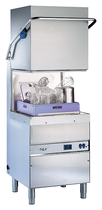 Купольная посудомоечная машина Dihr HT 11 используется на средних и крупных предприятиях общественного питания для мытья тарелок, стаканов, чашек, столовых приборов, подносов и противней. Обтекаемая форма свода предотвращает падение капель.