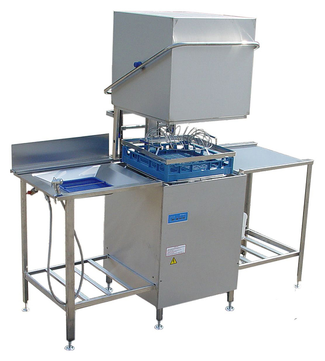 Купольная посудомоечная машина ГродТогрМаш МПУ-700-01 предназначена для мытья тарелок, суповых мисок, стаканов, чашек, столовых приборов и подносов размером не более 530х325 мм на предприятиях общественного питания с числом посадочных мест до 50. Модель оснащена кнопочной электронной панелью управления. Корпус машины изготовлен из шлифованной нержавеющей стали.
