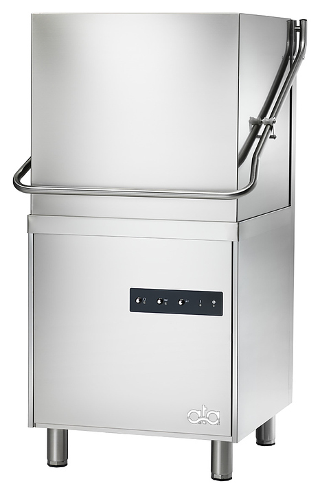 Посудомоечная машина ATA B 51 предназначена для мытья в кассетах тарелок, чашек и столовых приборов с применением жидких моющих и ополаскивающих средств на предприятиях общественного питания и торговли. Модель оснащена вертикальным подъемным куполом, кабелем питания с вилкой и электромеханической панелью управления. Корпус, дверь, внутренняя облицовка камеры, рукоятка, опоры, моечные рукава, нагревательные элементы и ыпускной фильтр выполнены из высококачественной нержавеющей стали AISI 304, рукоятка, панель управления – из полимера черного цвета, кнопки с хромированным покрытием.
