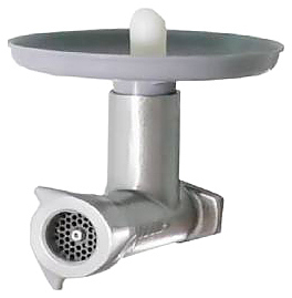 Насадка ТОРГМАШ ММП устанавливается на универсальные кухонные машины для приготовления мясного и рыбного фаршей. Механизм состоит из корпуса, в котором вращается шнек. Подрезная решетка, двусторонние ножи и ножевые решетки с разными диаметрами отверстий насажены на палец шнека. Изделие оснащено загрузочной тарелкой, толкачом, хвостовиком и спиральными ребрами, удерживающими от проворачивания мяса.