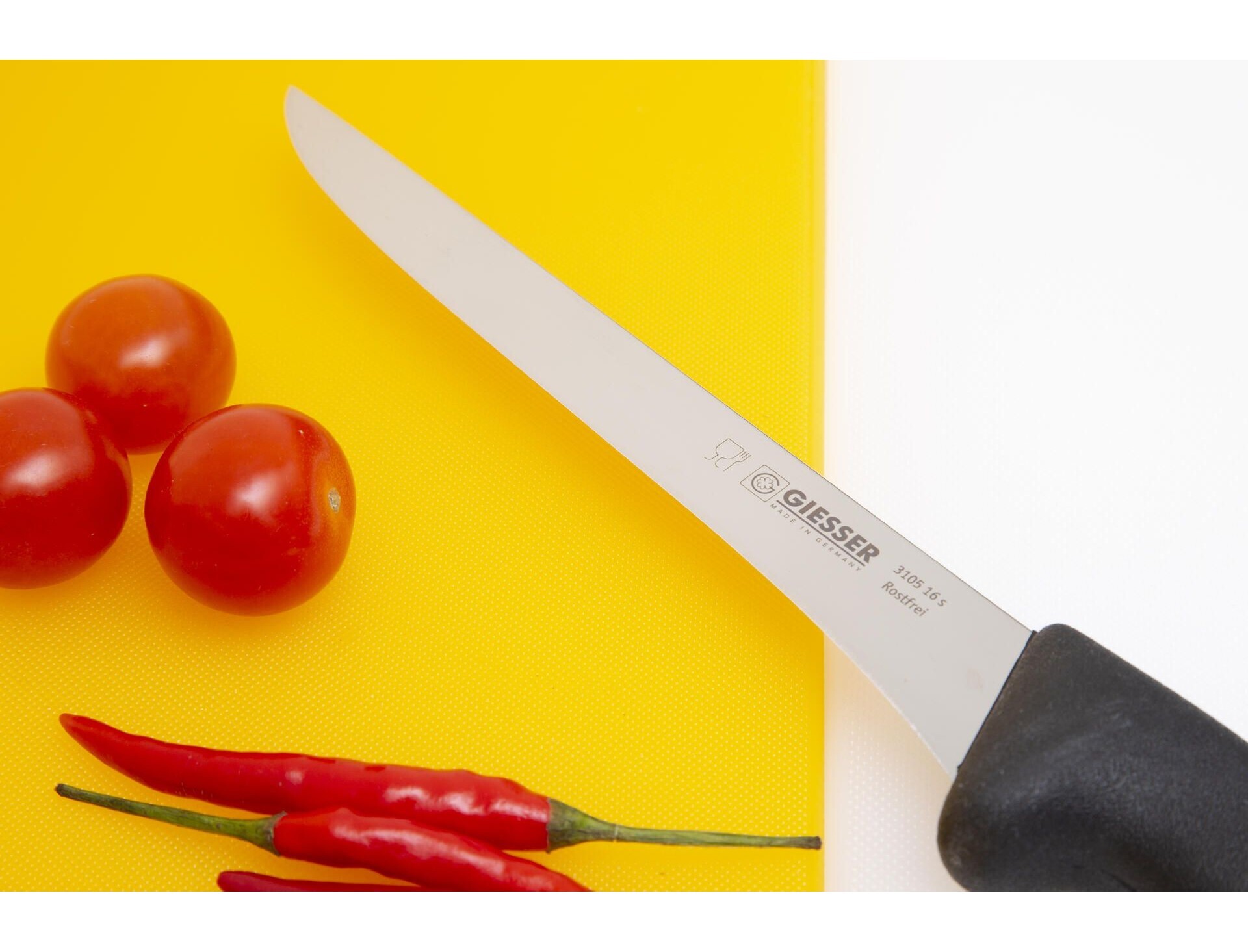 Нож обвалочный Giesser серии 3105 выпускается с длиной лезвия 13, 16 и 18 см, также под заказ возможна поставка данного ножа с ручкой другого цвета.