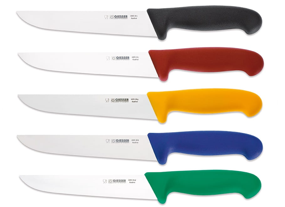 Нож жиловочный 4025 узкий, 18 см, черная рукоятка. Нож для разделки мяса, птицы или рыбы. Длина лезвия 18 см. Нож хорошо сбалансирован, долго держит заточку (около 6 мес.). Лезвие ножа легко восстановить при наведении на мусате. Шершавая, эргономичная рукоятка не скользит в мокрых руках.