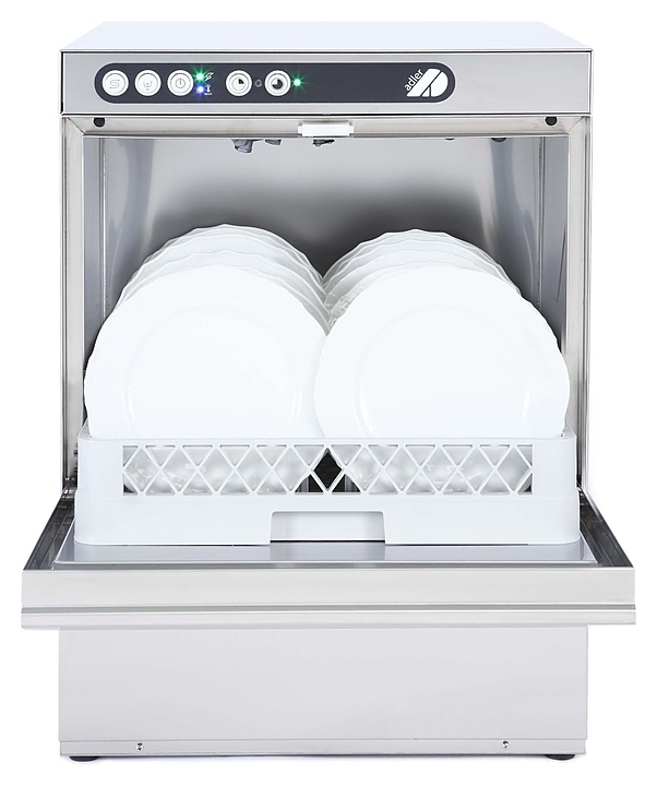 Посудомоечная машина с фронтальной загрузкой Adler ECO 50 серии Ecoline используется на предприятиях общественного питания и торговли для мойки посуды, кухонных принадлежностей, стаканов, чашек и столовых приборов. Модель оснащена механической панелью управления с LED-индикаторами и насосом мойки. Корпус выполнен из высокопрочной нержавеющей стали, фильтры и промывочные рукава - из композитного материала.