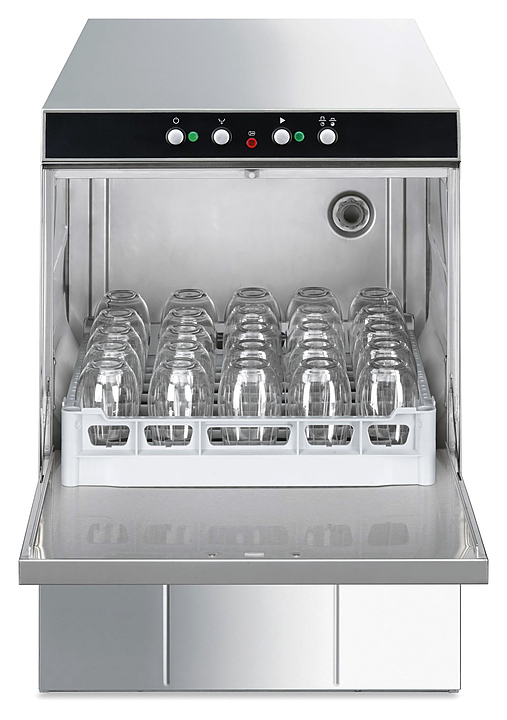Посудомоечная машина с фронтальной загрузкой Smeg UD500D серии Ecoline используется на предприятиях общественного питания и торговли для мойки столовых приборов, тарелок, стаканов, чашек и другой посуды. Модель оснащена электромеханической панелью управления. Корпус выполнен из нержавеющей стали AISI 304.