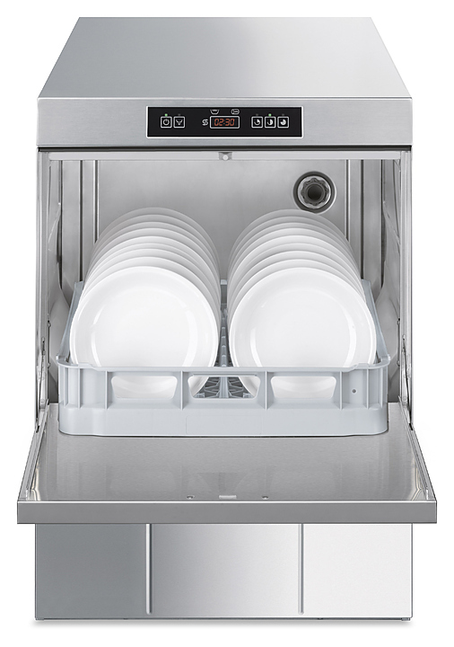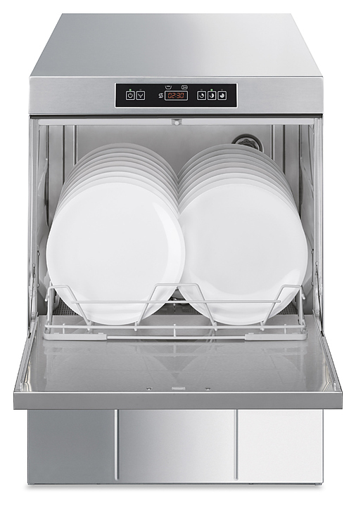 Посудомоечная машина с фронтальной загрузкой Smeg UD505DS серии Ecoline используется на предприятиях общественного питания и торговли для мойки столовых приборов, тарелок, стаканов, чашек и другой посуды. Модель оснащена электронной панелью управления. Корпус выполнен из нержавеющей стали AISI 304.