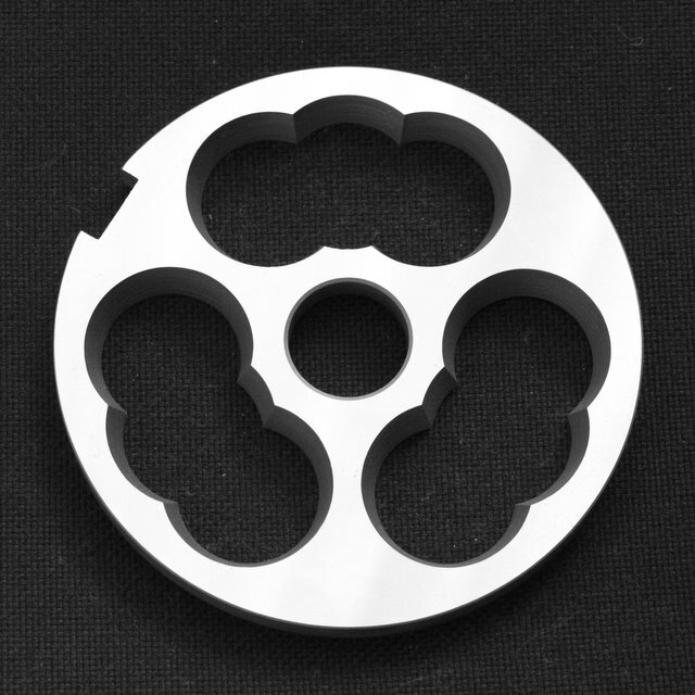 Решетка приемная (подрезная) фрезерованная используется в волчках (промышленных мясорубках), где устанавливаются решётки с наружным диаметром 125 мм и диаметром центрального отверстия 25 мм.
