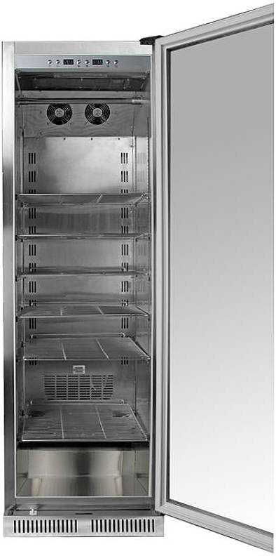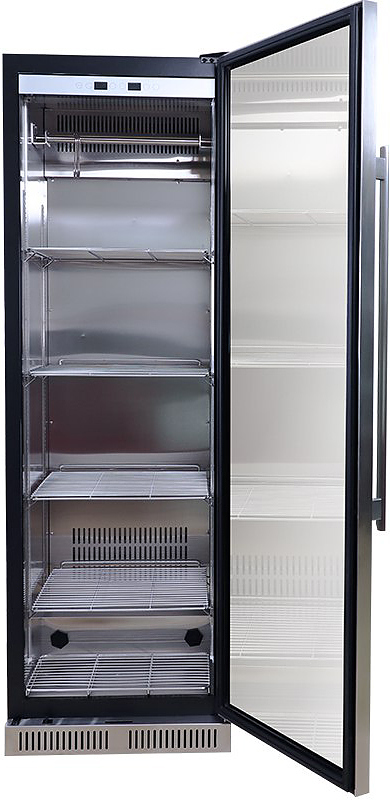 Шкаф для мяса MeatAge LUX SN-415 предназначен для охлаждения и вызревания мяса, ветчины и салями в частных домах, квартирах, отелях и офисах. Модель оснащена сенсорной панелью управления и запираемой дверцей с прочными петлями и замком. Внутренняя камера и ручки выполнены из нержавеющей стали, дверная рама - из бесшовной нержавеющей стали, дверца - из трехслойного анти-УФ стекла.