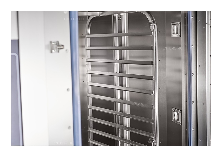 - После завершения процесса приготовления поворотная рама автоматически устанавливается в положение для выкатывания тележки-шпильки