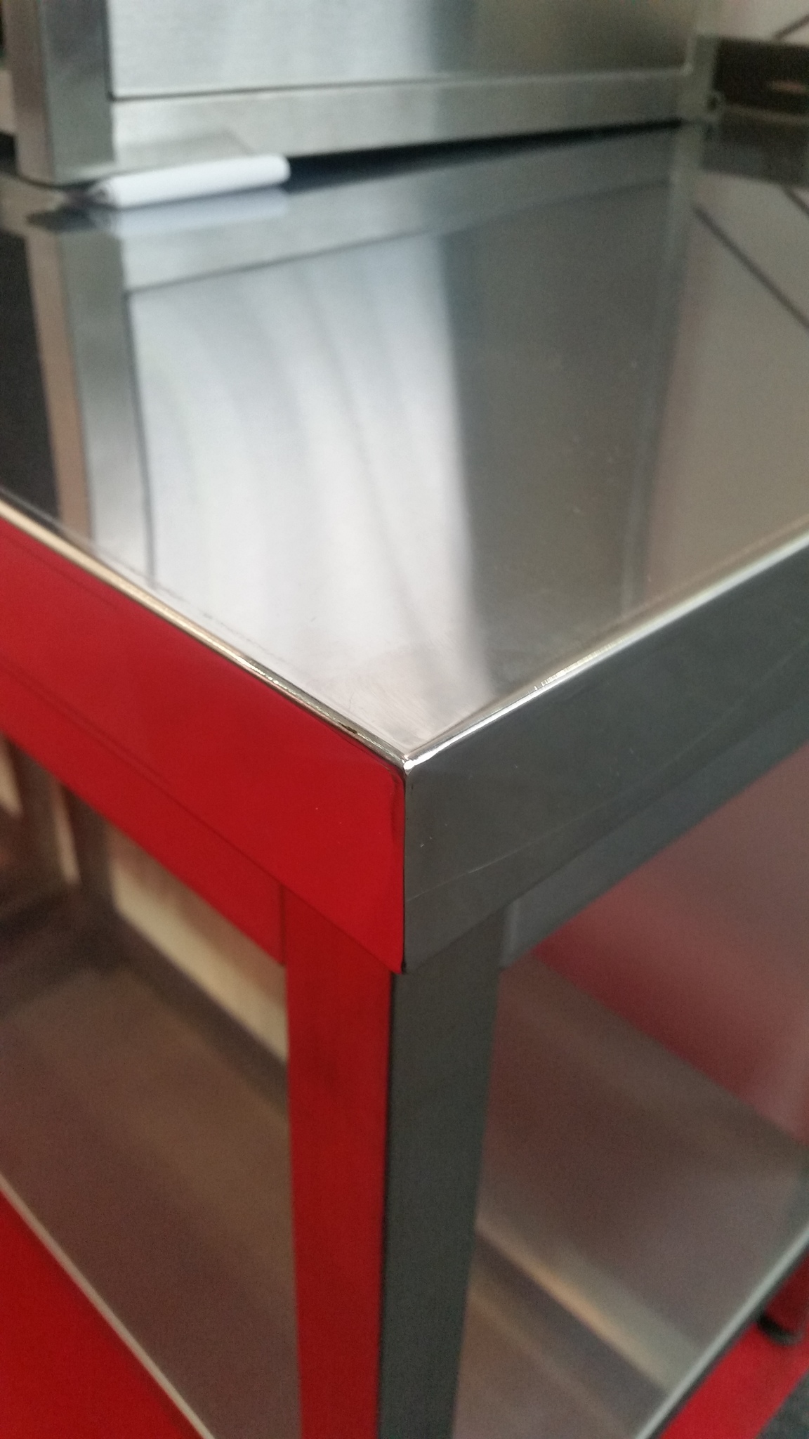 Усиливающая рамка столешницы из нержавеющей стали AISI 430толщиной 1,5 мм.Полка сплошная из нержавеющей стали AISI 430толщиной 0,8 мм.
