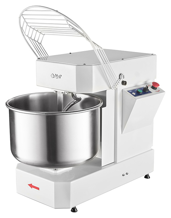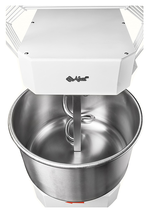 Корпус выполнен из высококачественной конструкционной стали с полимерным покрытием, металлические детали машины, контактирующие с продуктом во время замеса (спираль, дежа, нож) - из нержавеющей стали AISI 304.