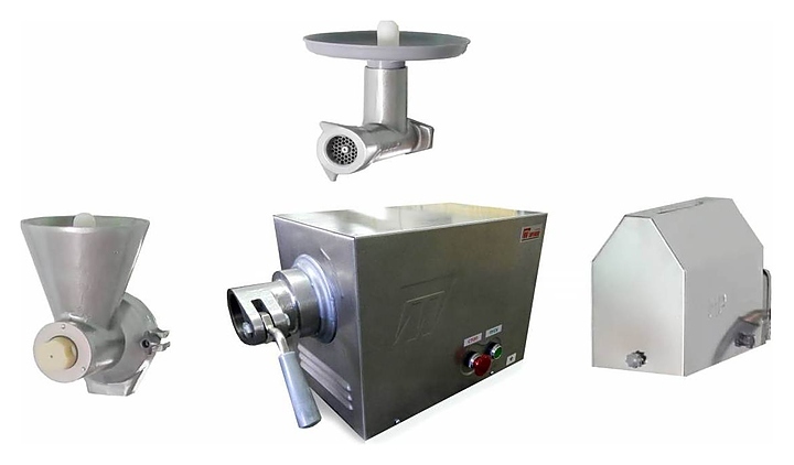 Универсальная кухонная машина ТОРГМАШ УКМ-02-01 используется на предприятиях общественного питания и торговли для измельчения в фарш мяса и рыбы, котлетной массы и набивки для колбас. Приводной механизм оснащен двухскоростным электродвигателем. Модель оснащена толкателем, съемником, решетками 5 и 9 мм. Корпус выполнен из стали с покрытием порошковой краской, насадка-мясорубка - из алюминия. Машина упаковывается в деревянный ящик.