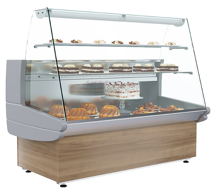 Кондитерская витрина Carboma K85 SM 1,2-1 (ВХСд-1,2 ЭКО (Паттерн)) предназначена для демонстрации, охлаждения и кратковременного хранения кондитерских изделий, десертов и сэндвичей на предприятиях общественного питания и торговли. Модель оснащена микропроцессорным блоком управления с индикатором температуры, 2 полками, ночными шторками из органического стекла и регулируемыми ножками высотой от 20 до 35 м. Зона выкладки и столешница выполнены из стали серого цвета, боковины - из коричневого, серого или черного пластика, нижняя панель - из паттерна ольхи.