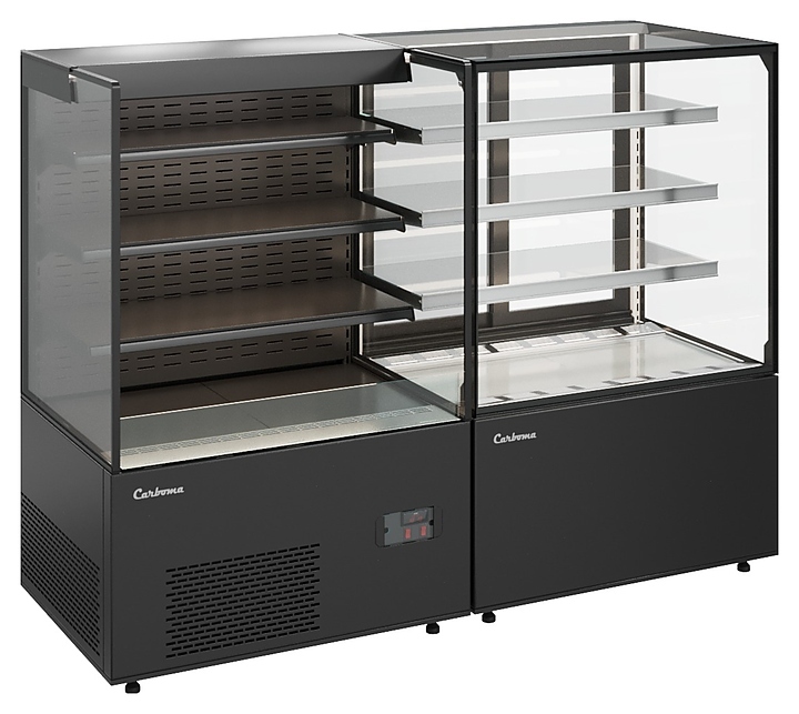 Открытая кондитерская витрина Carboma KC71-110 VV 1,2-2 COSMO используется на предприятиях общественного питания и торговли для демонстрации, охлаждения и кратковременного хранения напитков, тортов, пирожных и других кондитерских изделий и гастрономических товаров. Модель оснащена 3 регулируемыми по уровню металлическими полками со встроенными ценникодержателями и регулируемыми ножками высотой от 30 до 50 мм. Корпус выполнен из стали и пластика, термоизоляция корпуса - из пенополиуретана, остекление - из структурного стеклопакета.