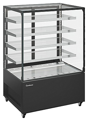Закрытая кондитерская витрина Carboma КС71-150 VV 0,9-1 COSMO используется на предприятиях общественного питания и торговли для демонстрации, охлаждения и кратковременного хранения напитков, тортов, пирожных и других кондитерских изделий и гастрономических товаров. Модель оснащена 4-х сторонним остеклением, 4 регулируемыми по уровню стеклянными полками со встроенными ценникодержателями и регулируемыми ножками высотой от 30 до 50 мм. Корпус выполнен из стали и пластика, термоизоляция корпуса - из пенополиуретана.