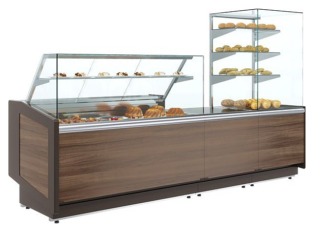 Кондитерская витрина? Carboma КС80 N 0,8-11 BORNEO используется на предприятиях общественного питания и торговли для демонстрации и кратковременного хранения продукции, не требующей определенного температурного режима. Модель оснащена 3 полками и регулируемыми ножками высотой от 30 до 50 мм. Зона выкладки и столешница выполнены из шлифованной нержавеющей стали.