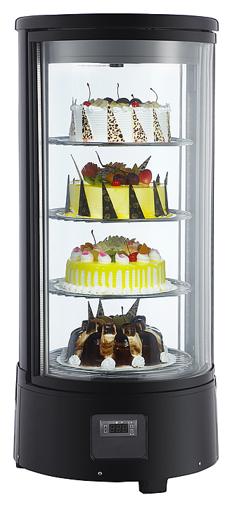 Кондитерская витрина Cooleq CW-72 предназначена для демонстрации, охлаждения и кратковременного хранения тортов, пирожных, фруктовых десертов и пиццы на предприятиях общественного питания и торговли. Модель оснащена цифровым регулятором температуры, двойным стеклом, замком, 4 вращающимися круглыми хромированными полками и LED-подсветкой.