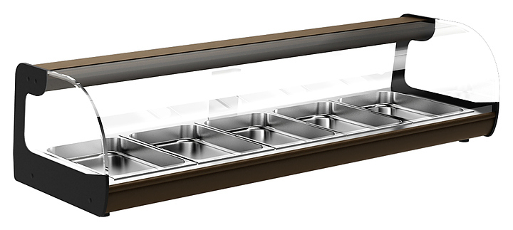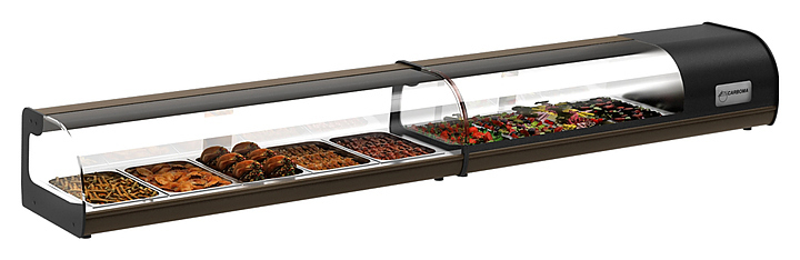 Тепловая витрина Carboma A37 SH 1,5-1 (ВТ-1,5) предназначена для демонстрации и поддержания в горячем состоянии мясных и рыбных изделий, пирожков, различных закусок и готовых блюд на предприятиях общественного питания и торговли. Модель оснащена регулятором температуры, ТЭНом и термостатом. Можно размещать другие стандартные гастроемкости.