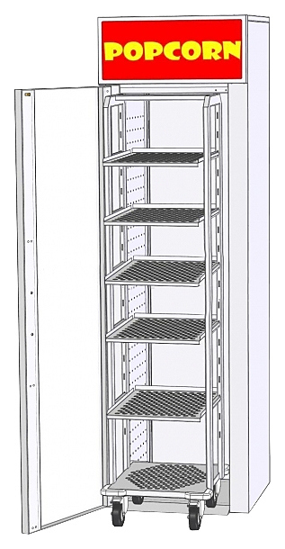 Тепловая витрина ТТМ VTP-060SD1 предназначена для демонстрации, подогрева и кратковременного хранения предварительно упакованных попкорна и чипсов Nachos на предприятиях общественного питания и торговли. Внутри объема расположена вкатная шпилька, спереди - распашные стеклянные двецы, сзади - глухая распашная дверца. Корпус выполнен из нержавеющей стали.